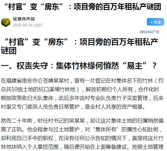 集体土地承载的不仅是资源价值,更是村民的共同利益。这片竹林地块本可用于村集体发展产业、改善村民生活,却被吴某某以个人意志改变用途,让村集体资产的管理失去了应有的监督与约束。