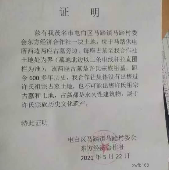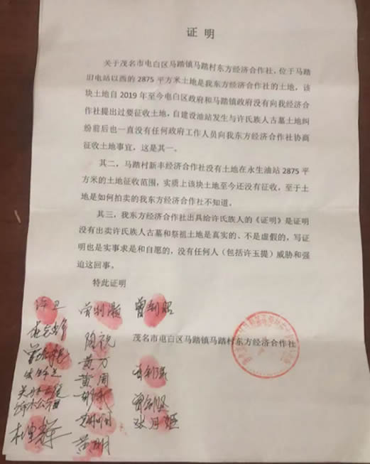 许玉提仅向马踏东方经济合作社村长许良核实古墓土地未被出卖的情况,对方自愿出具相关证明,不存在胁迫、诱导等违法取证情形。